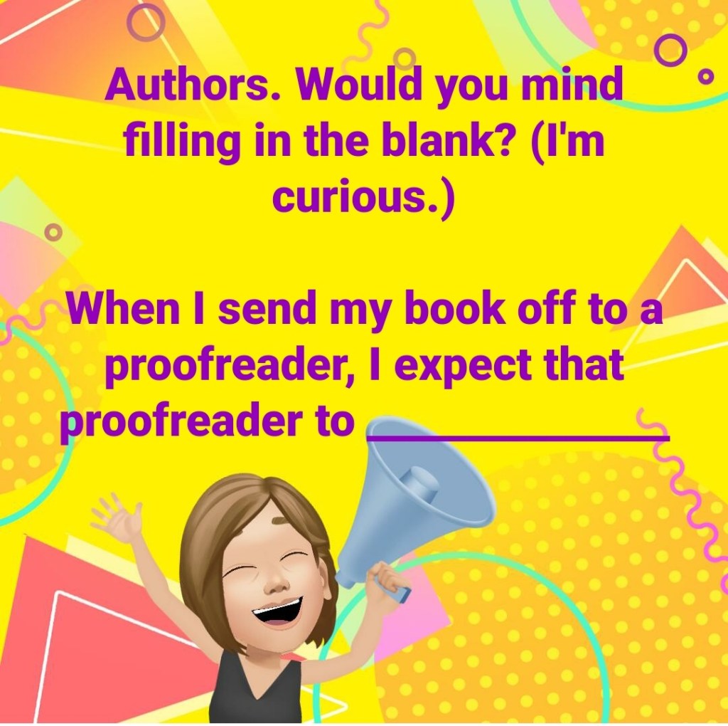 (And my feelings are that I would have heard even more of these non-traditional interpretations of what proofreading is had I asked indie authors individually, without them seeing other authors’ answers.)